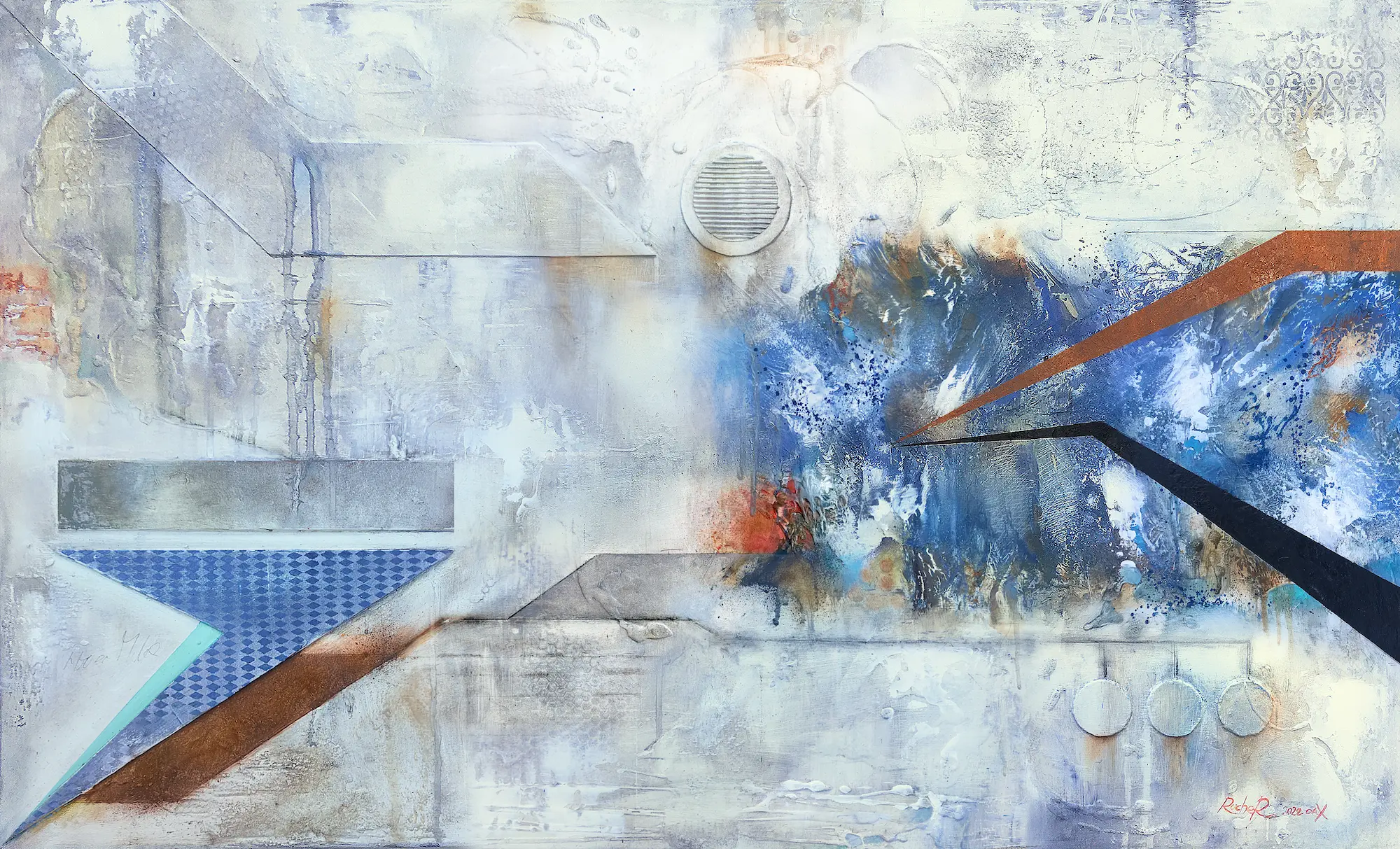Residente en Oaxaca desde 2012, el italiano Francesco Rucher se decanta por realizar una pintura vinculada técnicamente al diseño y visualmente integra elementos prehispánicos como la figura de Quetzacóatl o Tenochtitlán. Sus composiciones son variadas y acusan una influencia decisiva de la pintura renacentista, advertible en el uso de un personaje como figura central